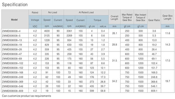 功率可按照客户需求定做,微型减速电机的外径尺寸:3.4mm至38mm;输出转速:5rpm至1500rpm;减速比2至2000;输出力矩1gf.cm至50kgf.cm。