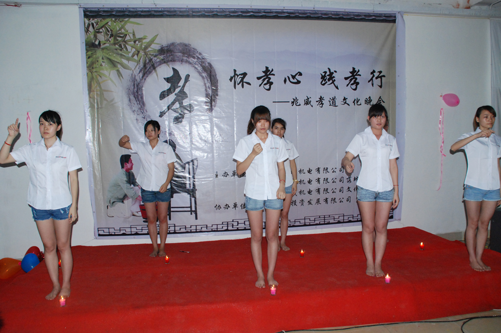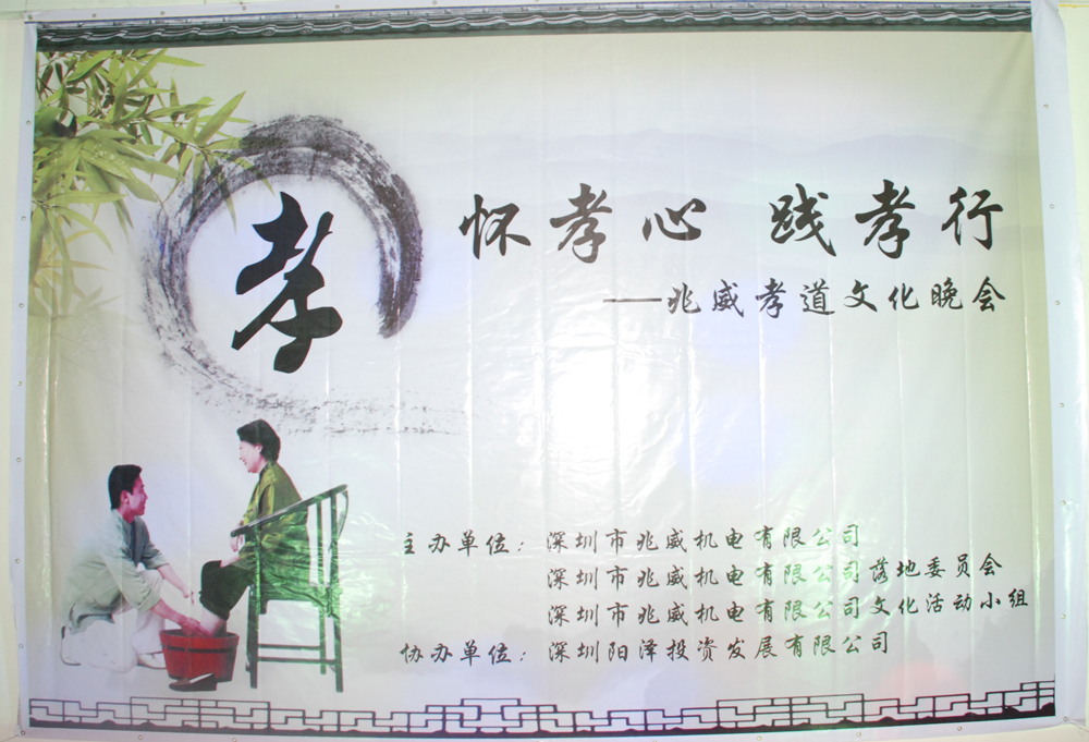 传扬中华民族传统是每个公民每个企业都不能推卸的责任,传承孝文化是迫不及待的。对于企业说,把孝做为博天堂网址是必要的社会责任。博天堂网址机电自成立来,一直把“孝道”作为博天堂网址,并且把孝引入每个员工的心里,提自身素质。孝顺父母自古以来都是中华民族的传统美德,尽孝不仅要有心,更要化作实际行动。
