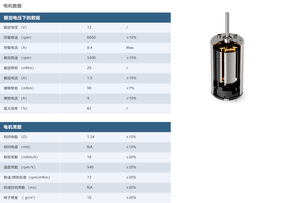转矩常数:18±20% mNm/A