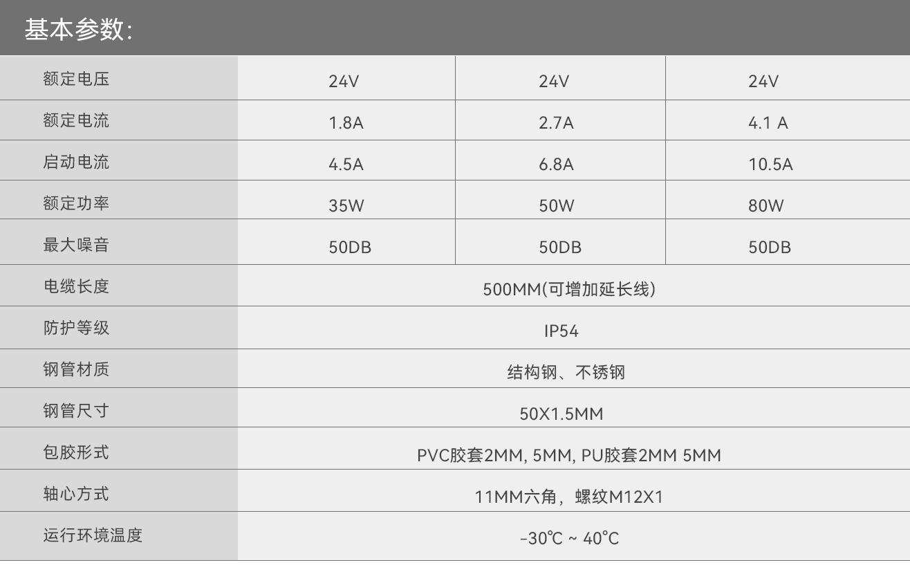 高功率:我们提供市面上常用的35W、50W的功率供客户进行选择,同时也开发了80W高功率电机,输出更大的扭矩。
