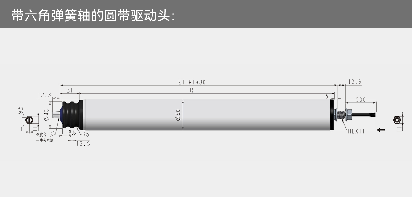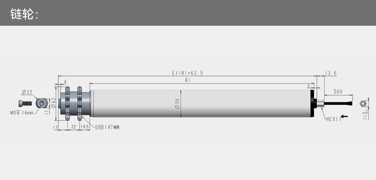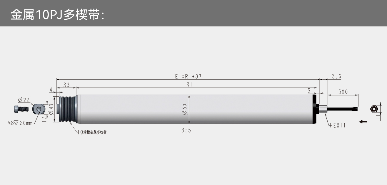 标准化产品:一般滚筒电机的长度为250~1500mm,直径为50mm、60mm、76mm、80mm、89mm。为了满足客户个性化的定制需求,客户可定制800mm以上的滚筒电机,且可带有多种链接方式:直通式、塑胶多楔带、金属多楔带、钢制双链轮、同步带轮,支持标准化生产制造。
