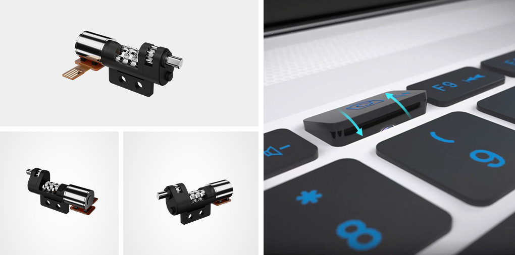据了解,随着笔记本逐步的轻薄化,也有厂商开始追求极致的轻薄,追求极窄边框,因此需要缩小屏幕周围边框,然而这正是大多数电脑摄像头的安装位置。为此,博天堂网址别出心裁,开发出一款带翻转功能的隐藏式摄像头驱动系统,利用紧凑的微型驱动结构,可以在有限的空间内,输出较大力矩,使得摄像头平时处于隐藏状态,当需要时候,只需要按下键盘即可一键弹出。