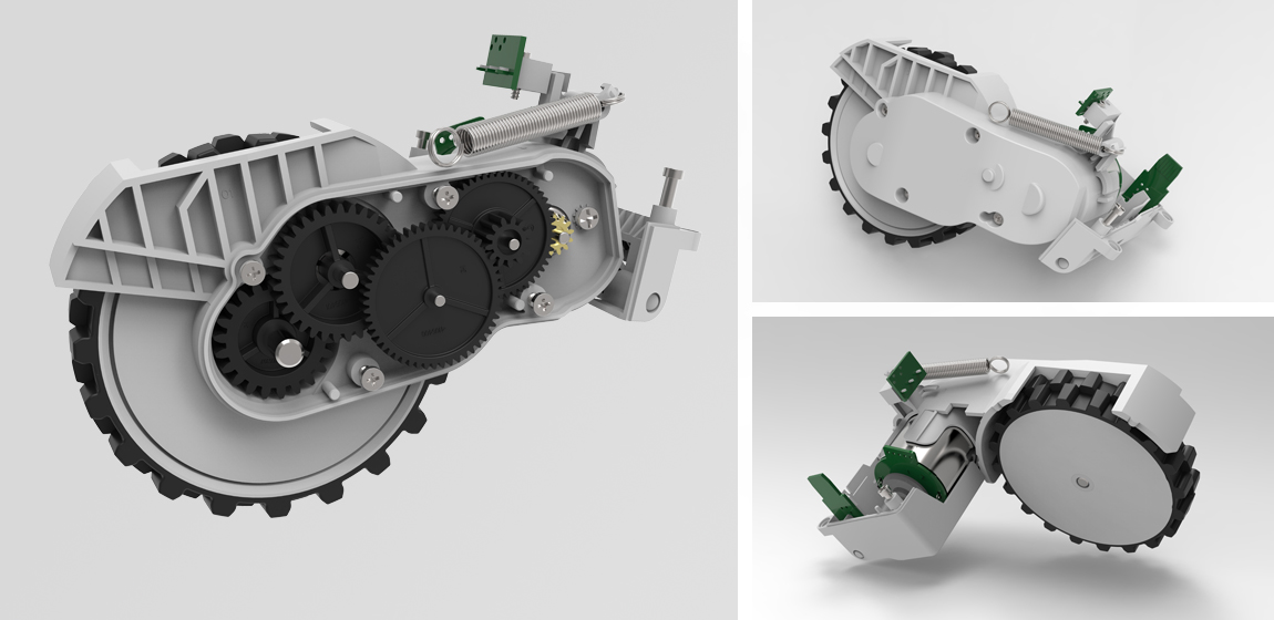 项目说明:通过对扫地机齿轮箱齿轮和齿形进行优化设计,采用平行齿轮提升扫地机齿轮箱噪音小,扭矩大。为防止头发缠绕进入驱动装置而导致马达损坏,对主刷齿轮箱进行了结构优化设计,提高了产品的使用寿命。