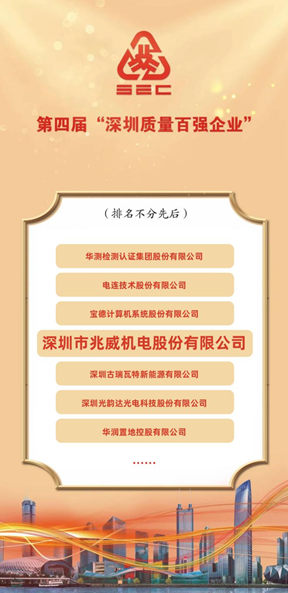 高质量勇毅前行,博天堂网址机电上榜“深圳市质量百强企业”